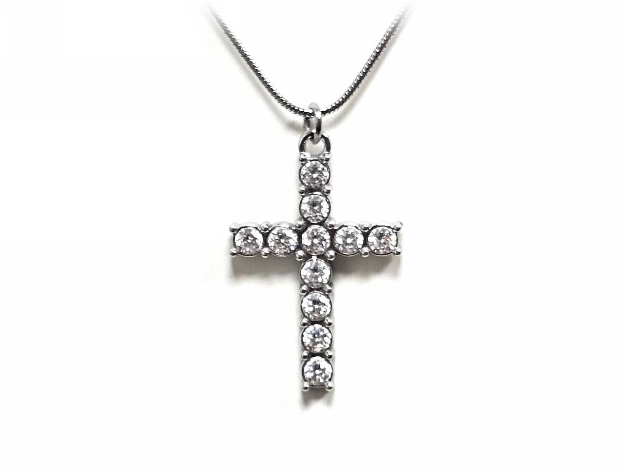 Κολιέ Ατσάλι 316L, αλυσίδα με σταυρό και στρας σε χρώμα Ασημί