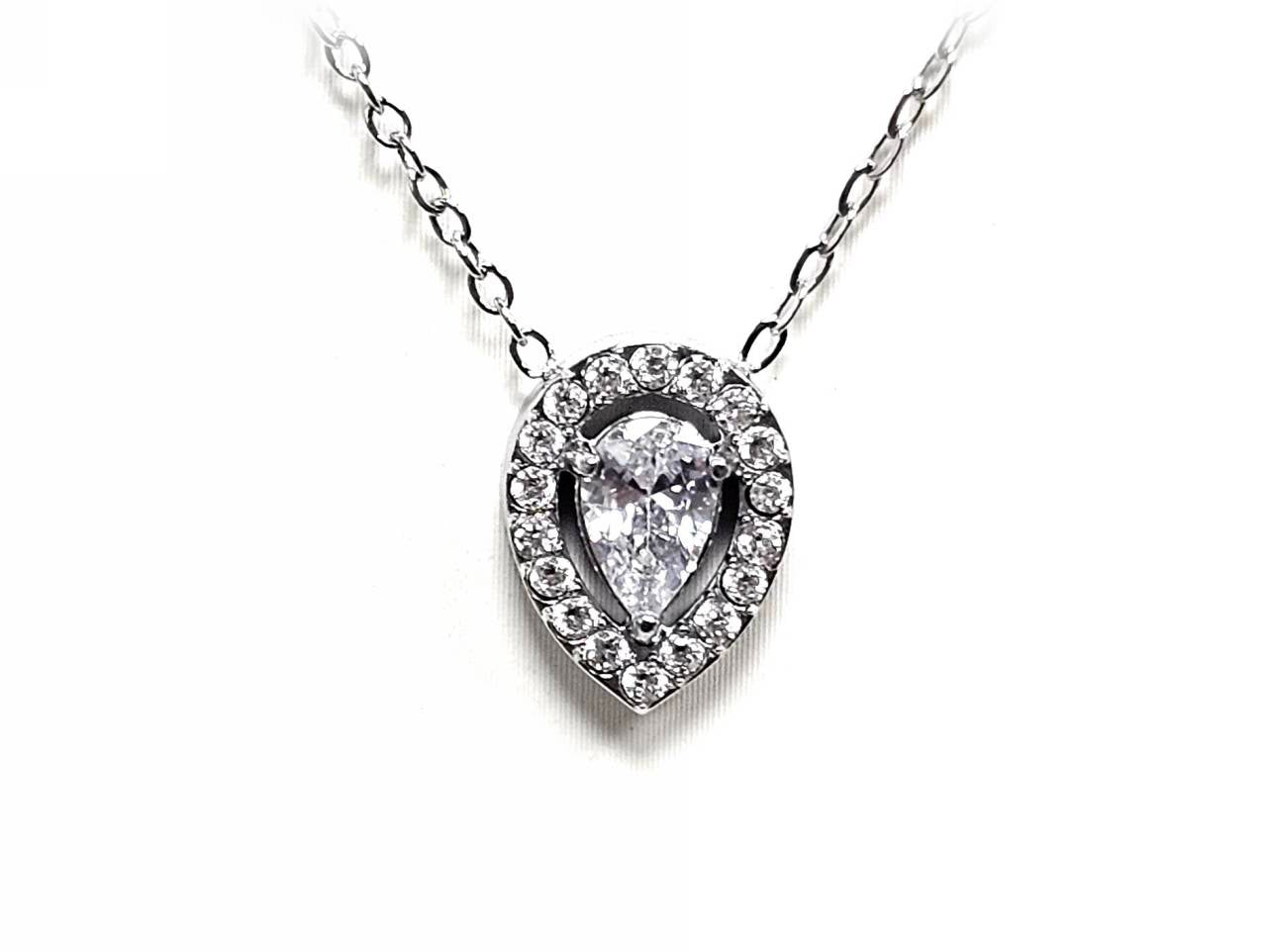 Κολιέ Ατσάλι 316L, αλυσίδα με στρας σε χρώμα Ασημί