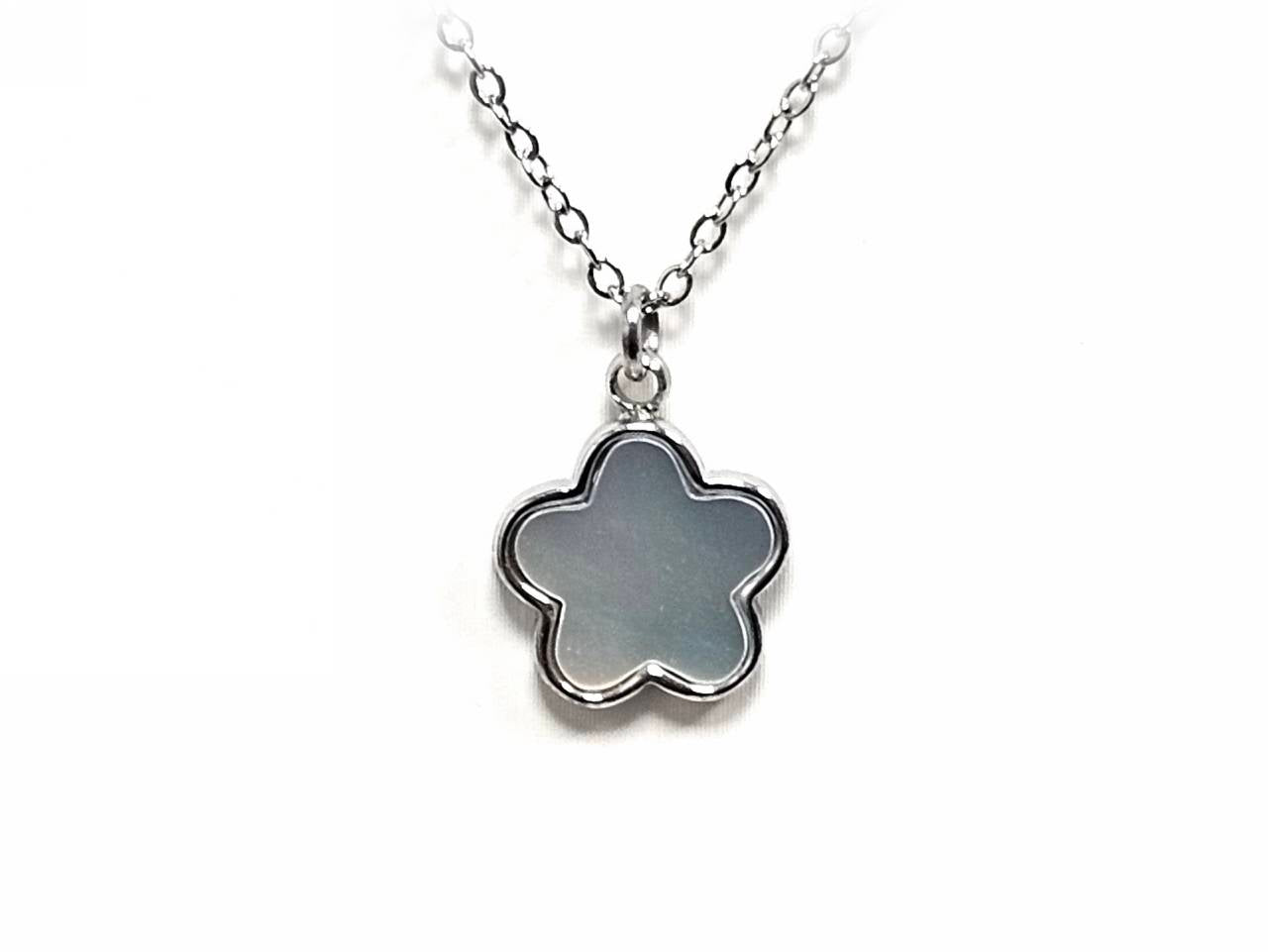 Κολιέ Ατσάλι 316L, αλυσίδα με λουλούδι φίλντισι σε χρώμα Ασημί