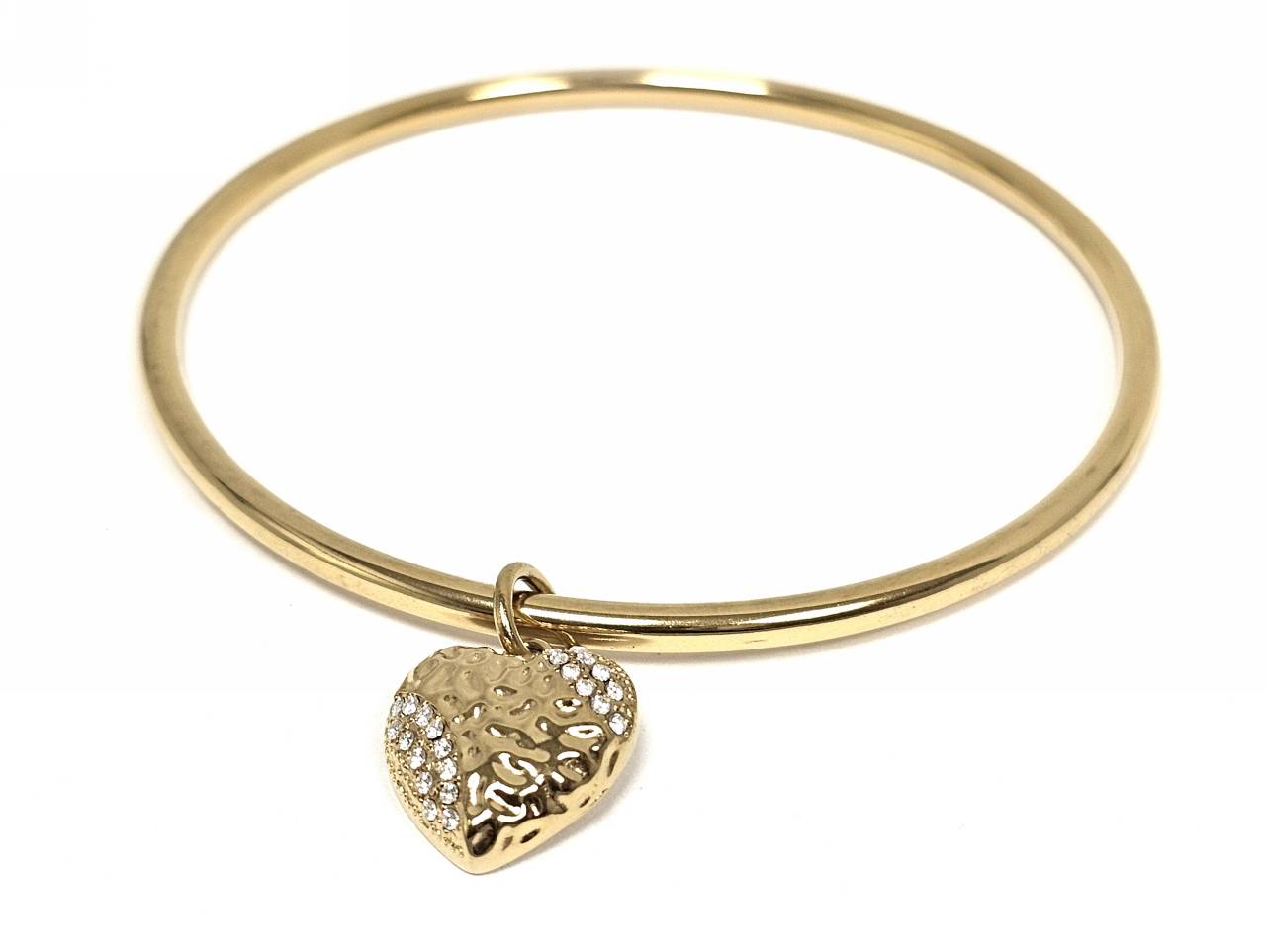 Βραχιόλι Ατσάλι 316L, με καρδια και στρας σε χρώμα Χρυσαφί