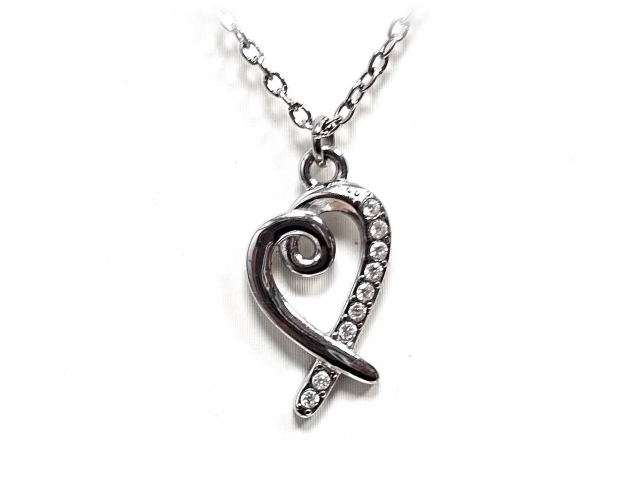 Κολιέ Ατσάλι 316L, αλυδίδα καρδιά με στρας σε χρώμα Ασημί