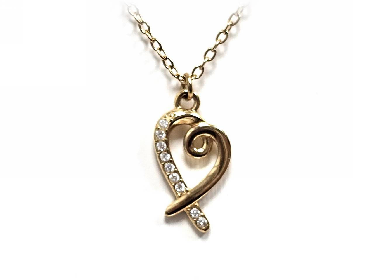 Κολιέ Ατσάλι 316L, αλυδίδα καρδιά με στρας σε χρώμα Χρυσαφί
