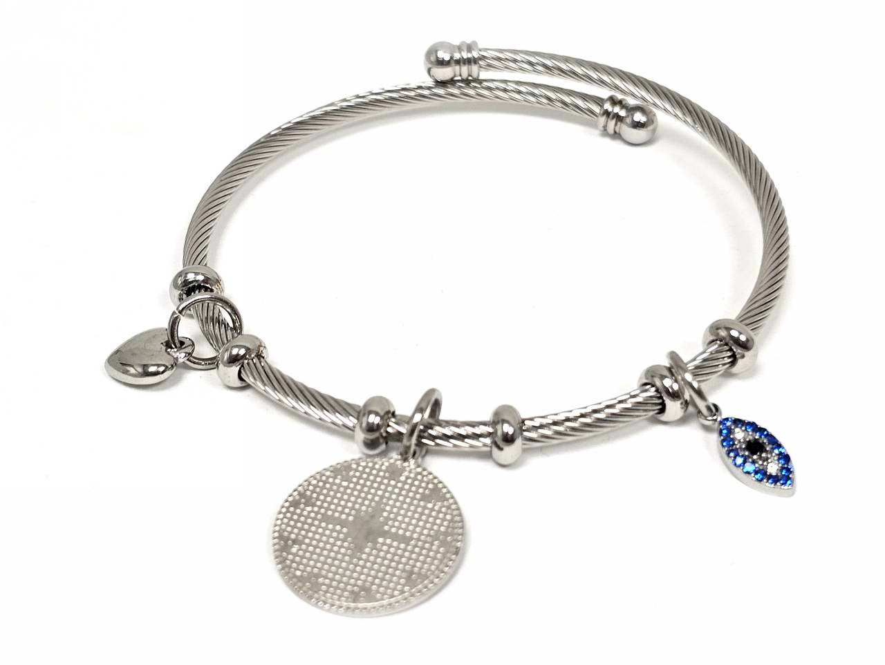 Βραχιόλι Ατσάλι 316L, με καρδιά , μάτι και στρας σε χρώμα Ασημί