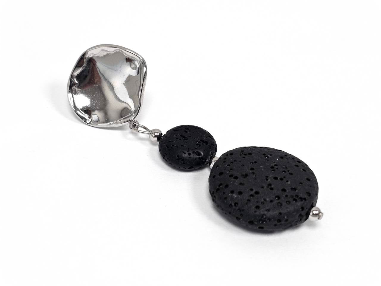 Σκουλαρίκια Πέτρα Ατσάλι 316L, με λάβα σε χρώμα Ασημί