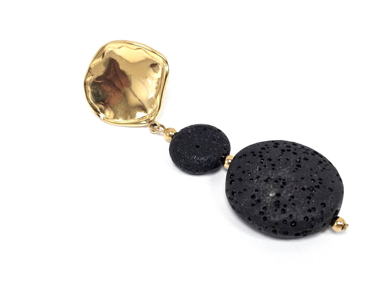 Σκουλαρίκια Πέτρα Ατσάλι 316L, με λάβα σε χρώμα Χρυσαφί