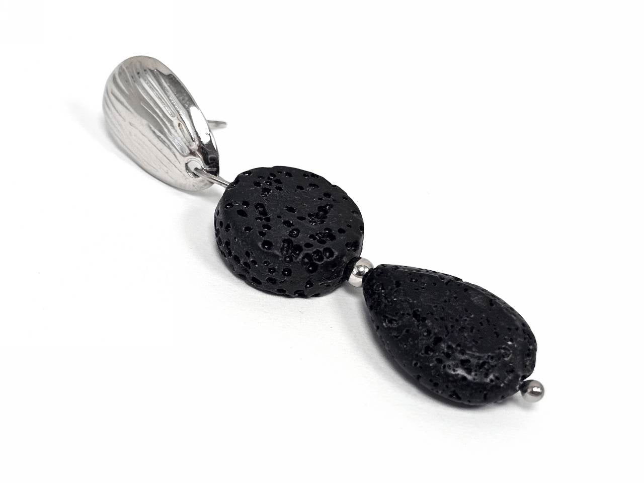Σκουλαρίκια Πέτρα Ατσάλι 316L, με λάβα σε χρώμα Ασημί