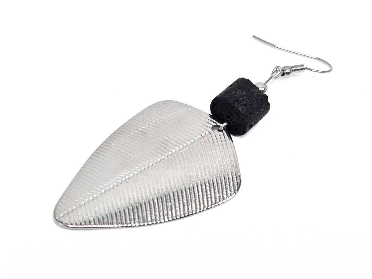 Σκουλαρίκια Πέτρα Ατσάλι 316L, με λάβα σε χρώμα Ασημί