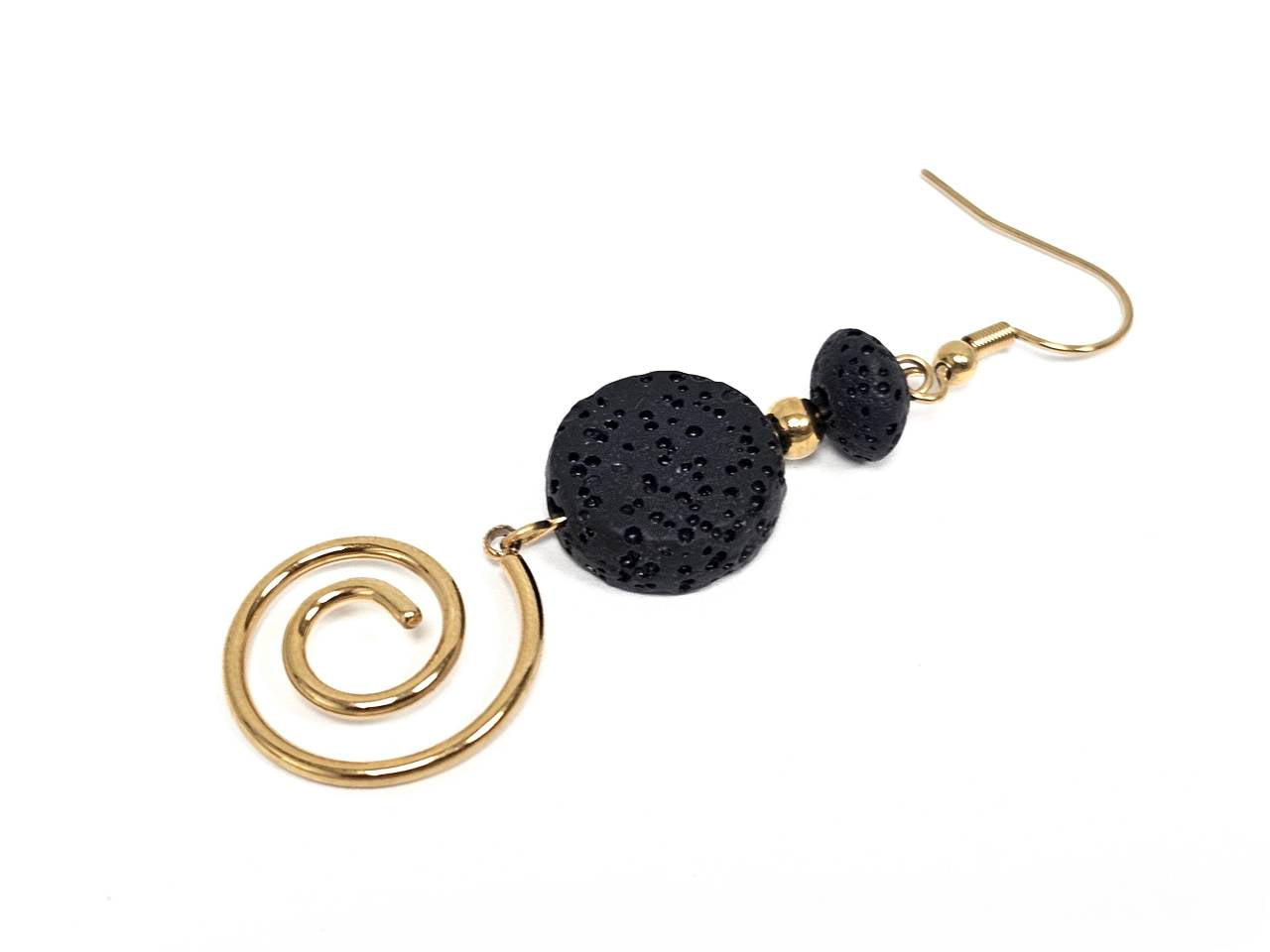 Σκουλαρίκια Πέτρα Ατσάλι 316L, σπέιρα με λάβα σε χρώμα Χρυσαφί