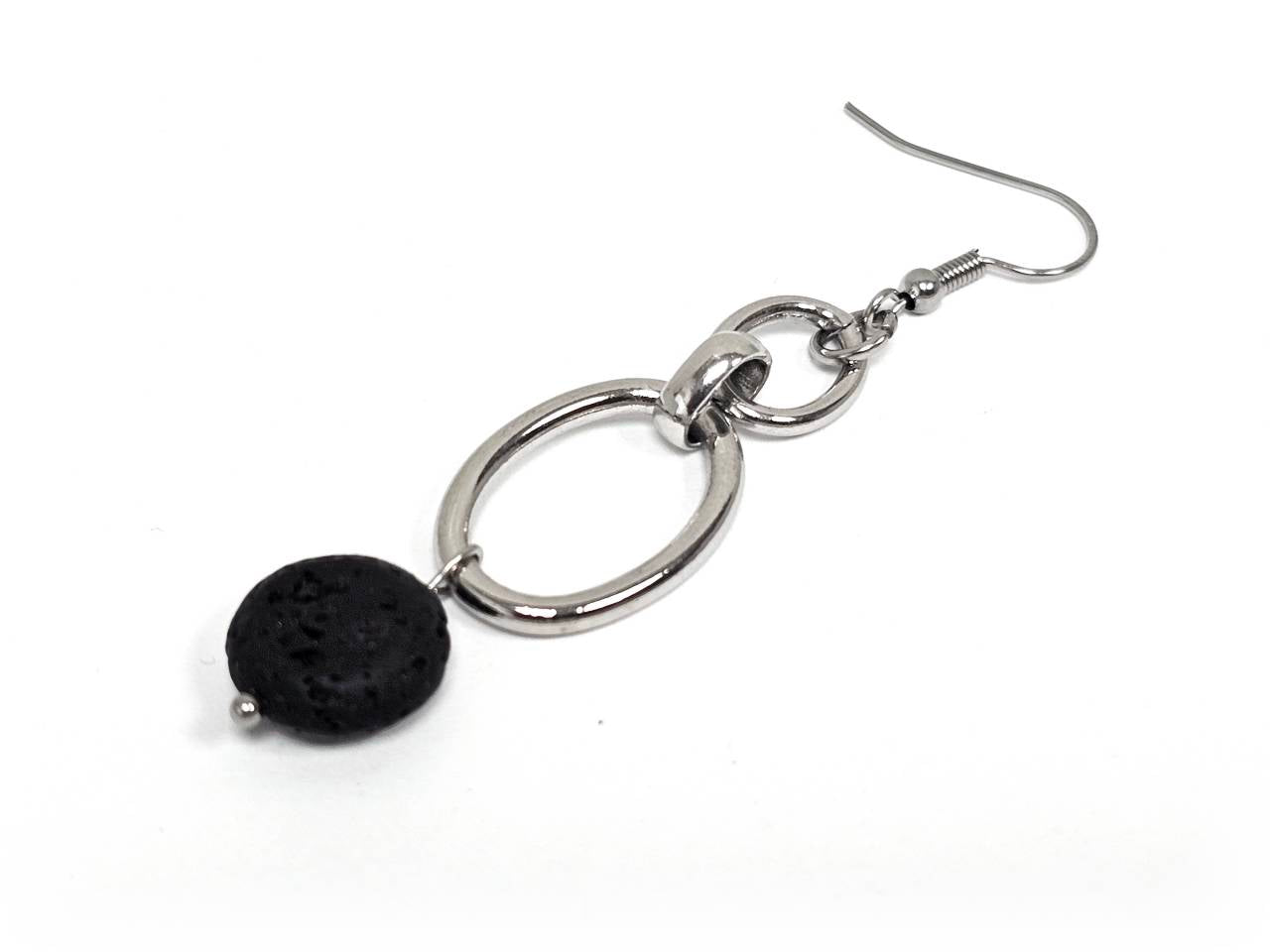 Σκουλαρίκια Πέτρα Ατσάλι 316L, με λάβα σε χρώμα Ασημί