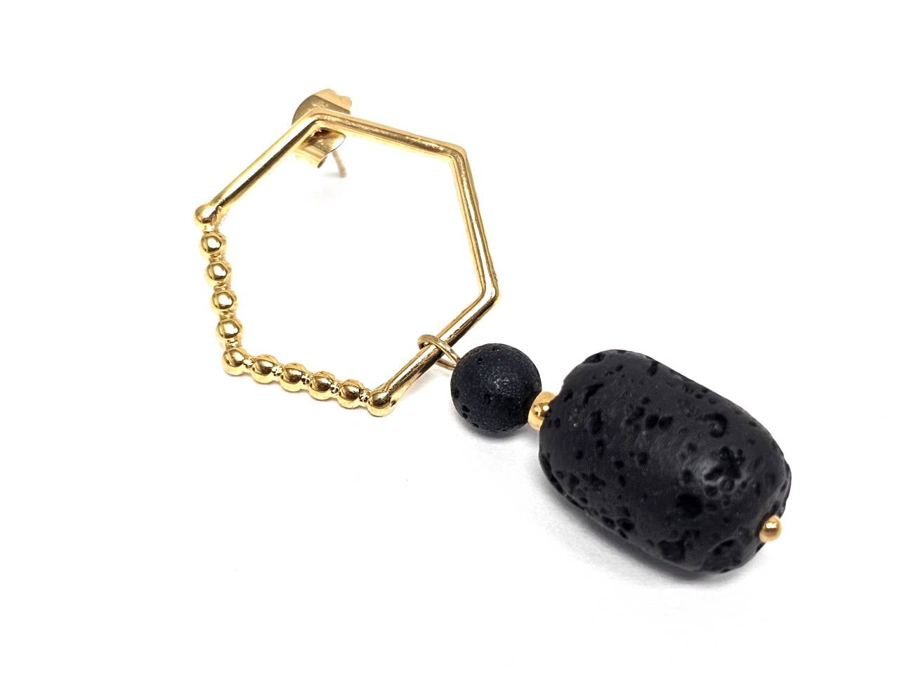 Σκουλαρίκια Πέτρα Ατσάλι 316L, με λάβα σε χρώμα Χρυσαφί