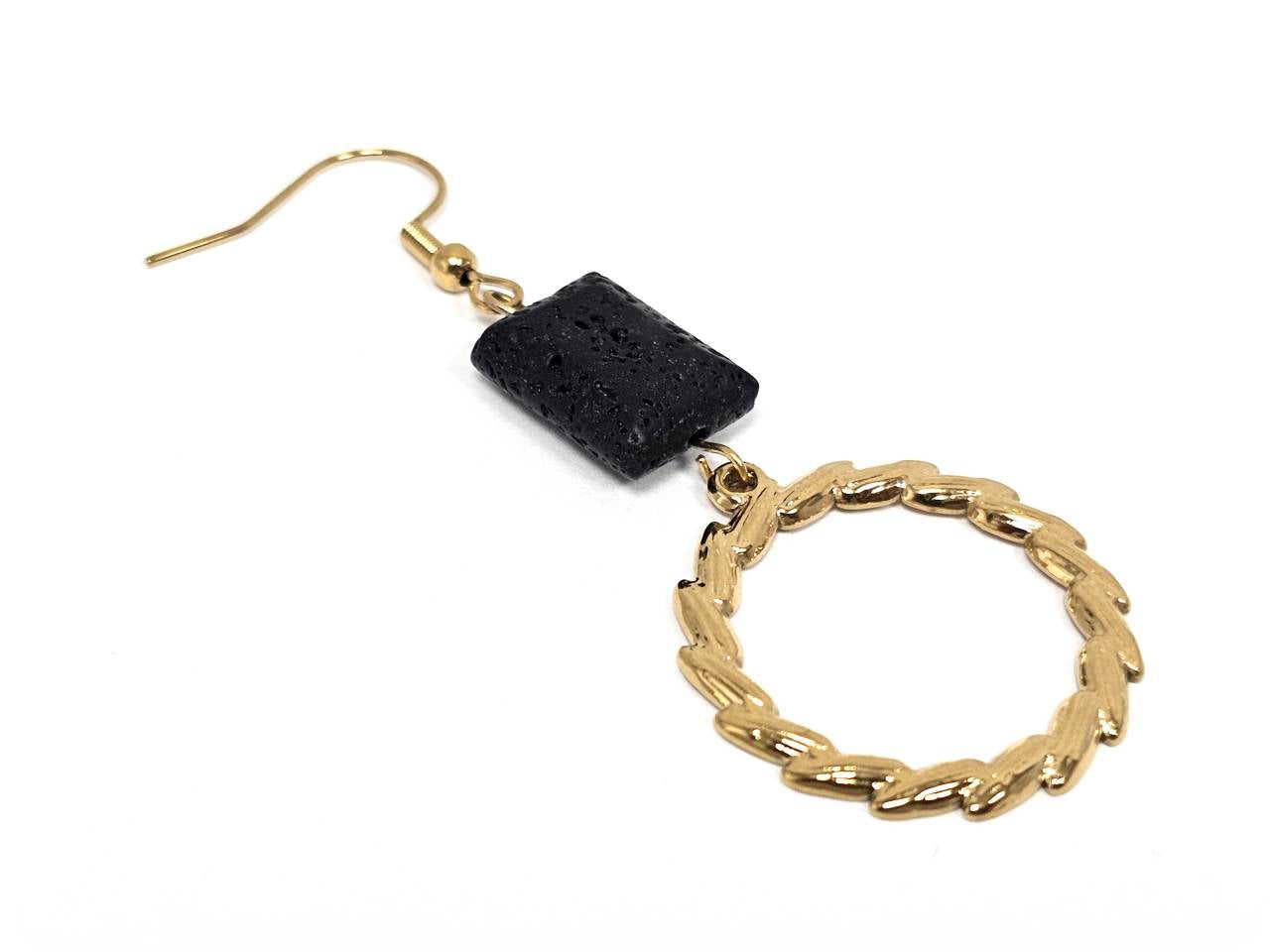 Σκουλαρίκια Πέτρα Ατσάλι 316L, με λάβα σε χρώμα Χρυσαφί