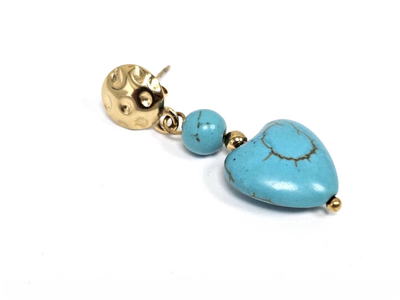 Σκουλαρίκια Πέτρα Ατσάλι 316L, καρδιά με τυρκουάζ σε χρώμα Χρυσαφί