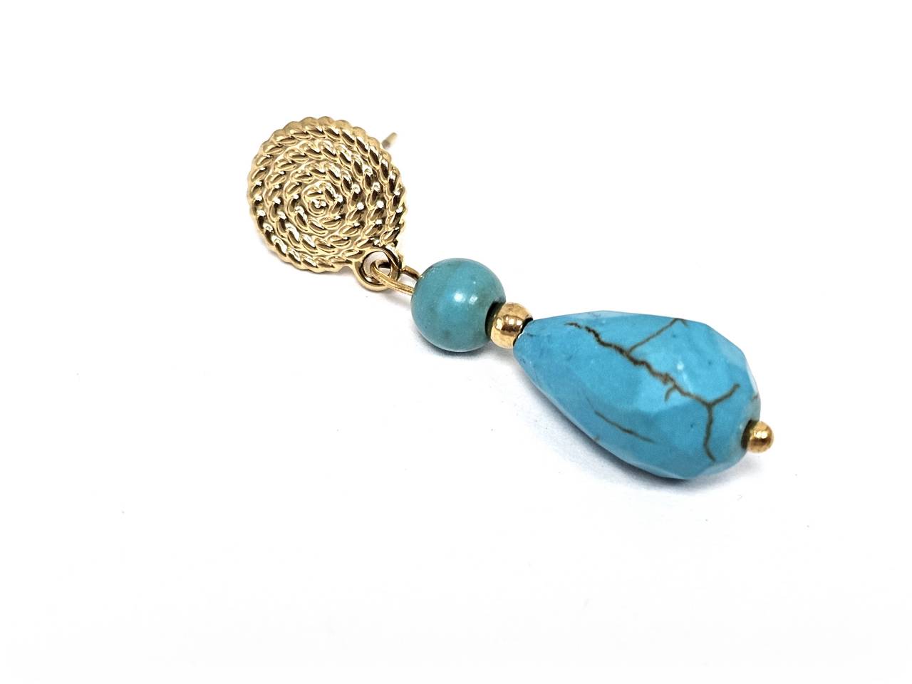 Σκουλαρίκια Πέτρα Ατσάλι 316L, σπείρα με τυρκουάζ σε χρώμα Χρυσαφί