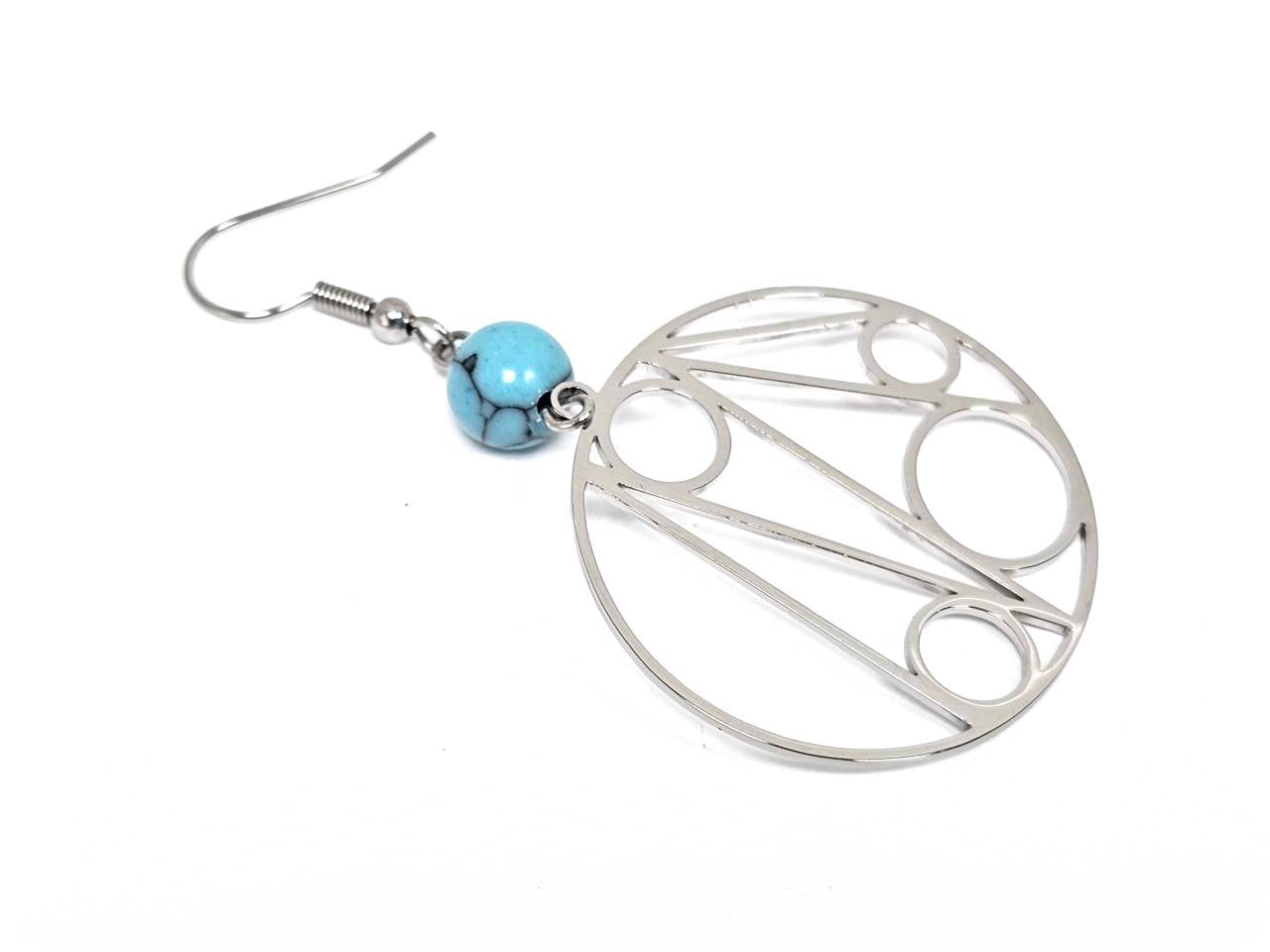 Σκουλαρίκια Πέτρα Ατσάλι 316L, με τυρκουάζ σε χρώμα Ασημί
