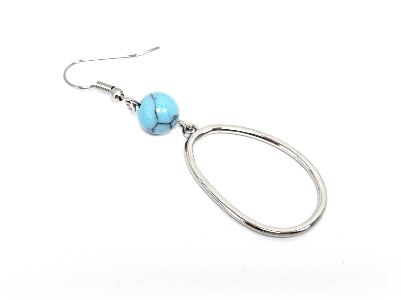 Σκουλαρίκια Πέτρα Ατσάλι 316L, με τυρκουάζ σε χρώμα Ασημί