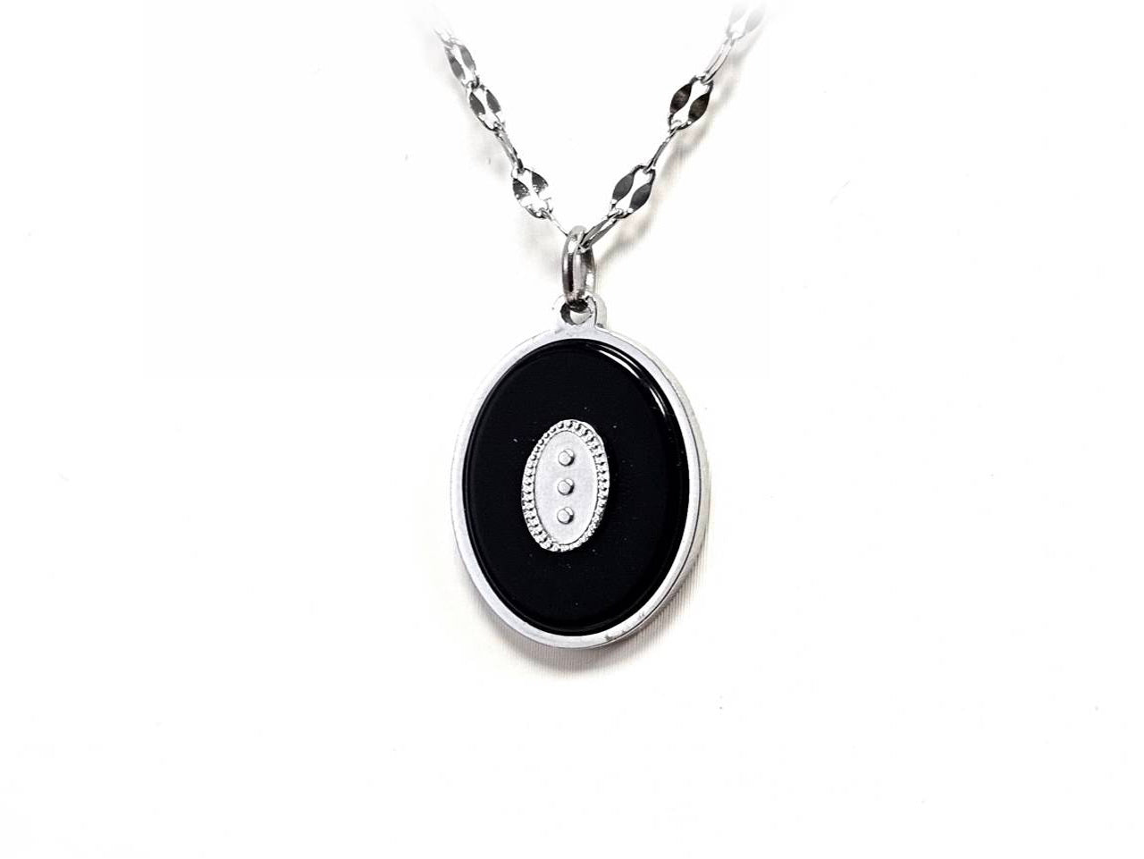 Κολιέ Πέτρα 316L, αλυσίδα με αχάτη σε χρώμα Ασημί