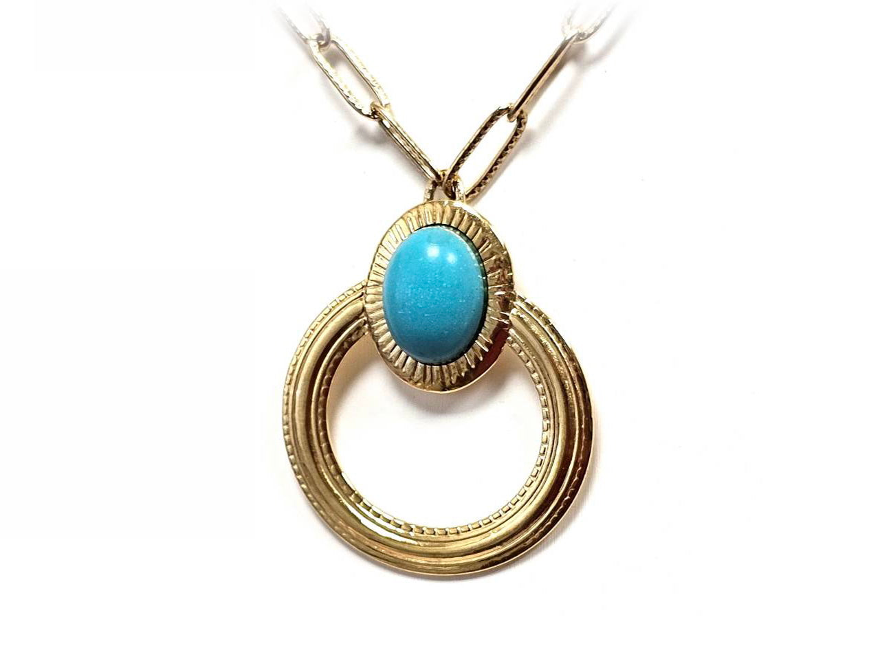 Κολιέ Πέτρα 316L, αλυσίδα με τυρκουάζ σε χρώμα Χρυσαφί